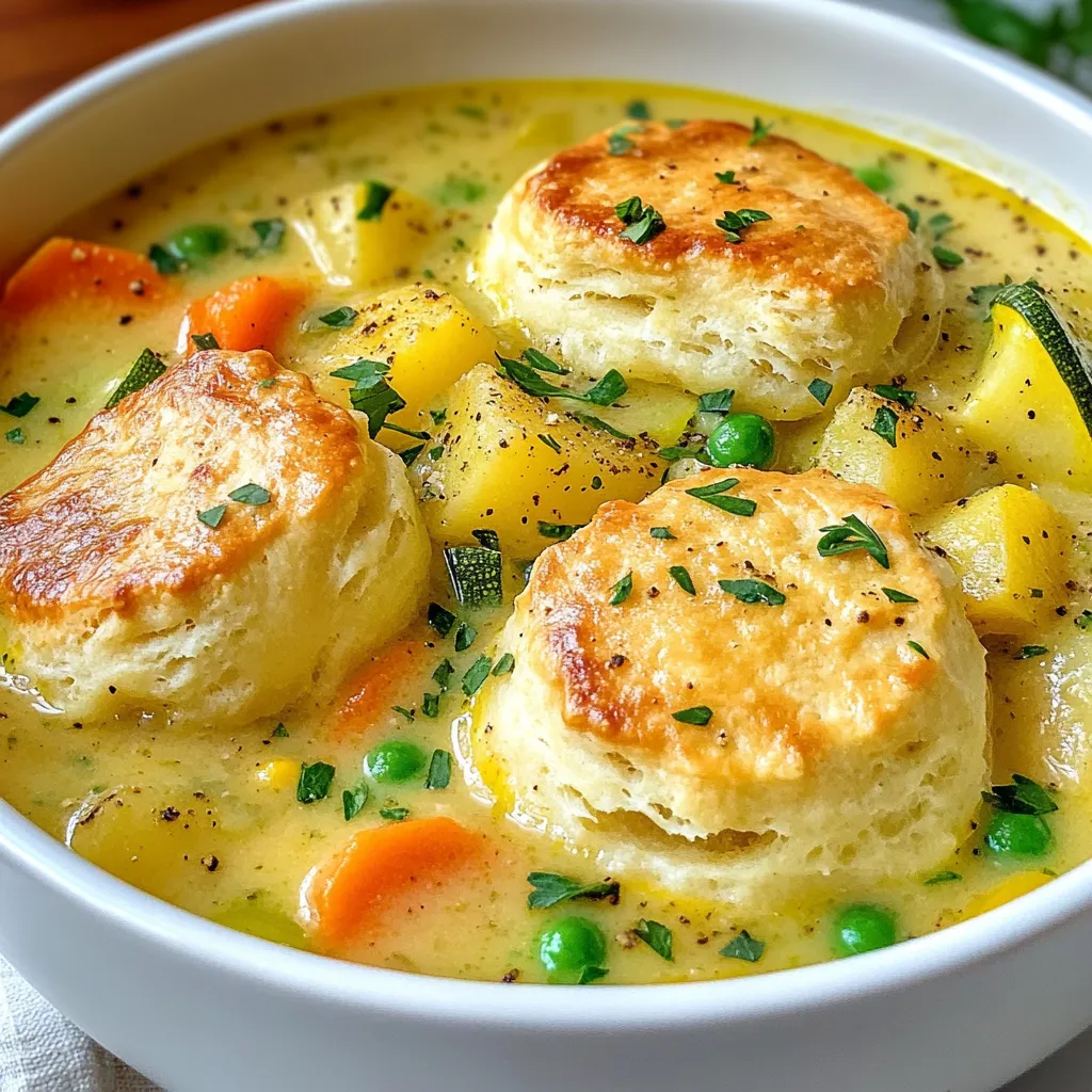 For a lovely presentation, serve the soup in deep bowls. Place the freshly baked biscuits right on top. This makes a beautiful and cozy dish. Sprinkle chopped parsley on the soup for a pop of color. You can also drizzle a little extra cream on top for a fancy touch. Enjoy it with a side salad for a full meal!